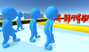 What will you do if you are chased by too many crazy enemies? Crowd Enhance provides you with a chance to experience a life of being chased with red stickman armies in a 3D avoiding arcade game. It is managed for you to collect guns and avoid obstacles on platform tracks at all levels. Never let them approach you anyway!